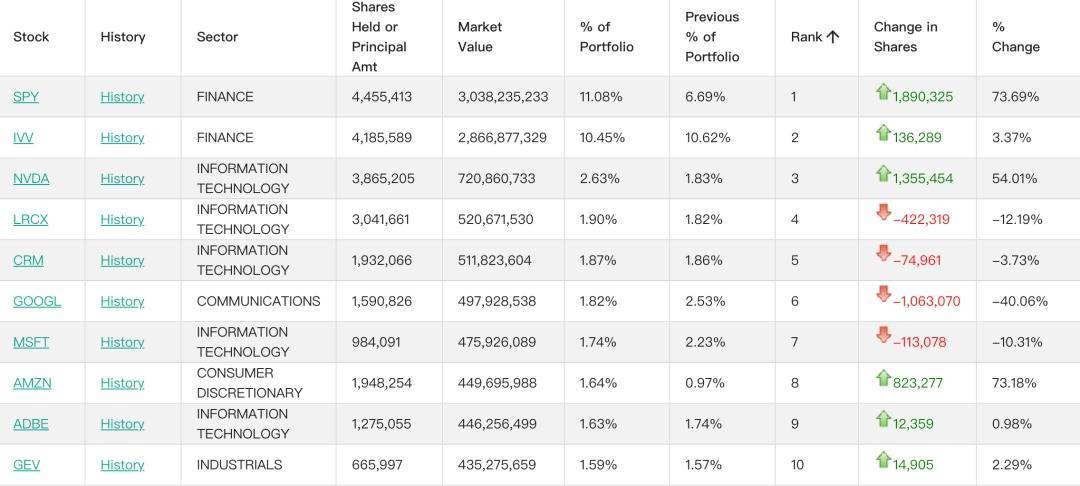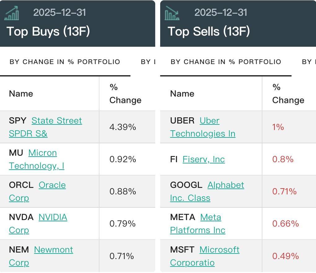 桥水2025年第四季度抓仓变动 图片开始:whalewisdom.com