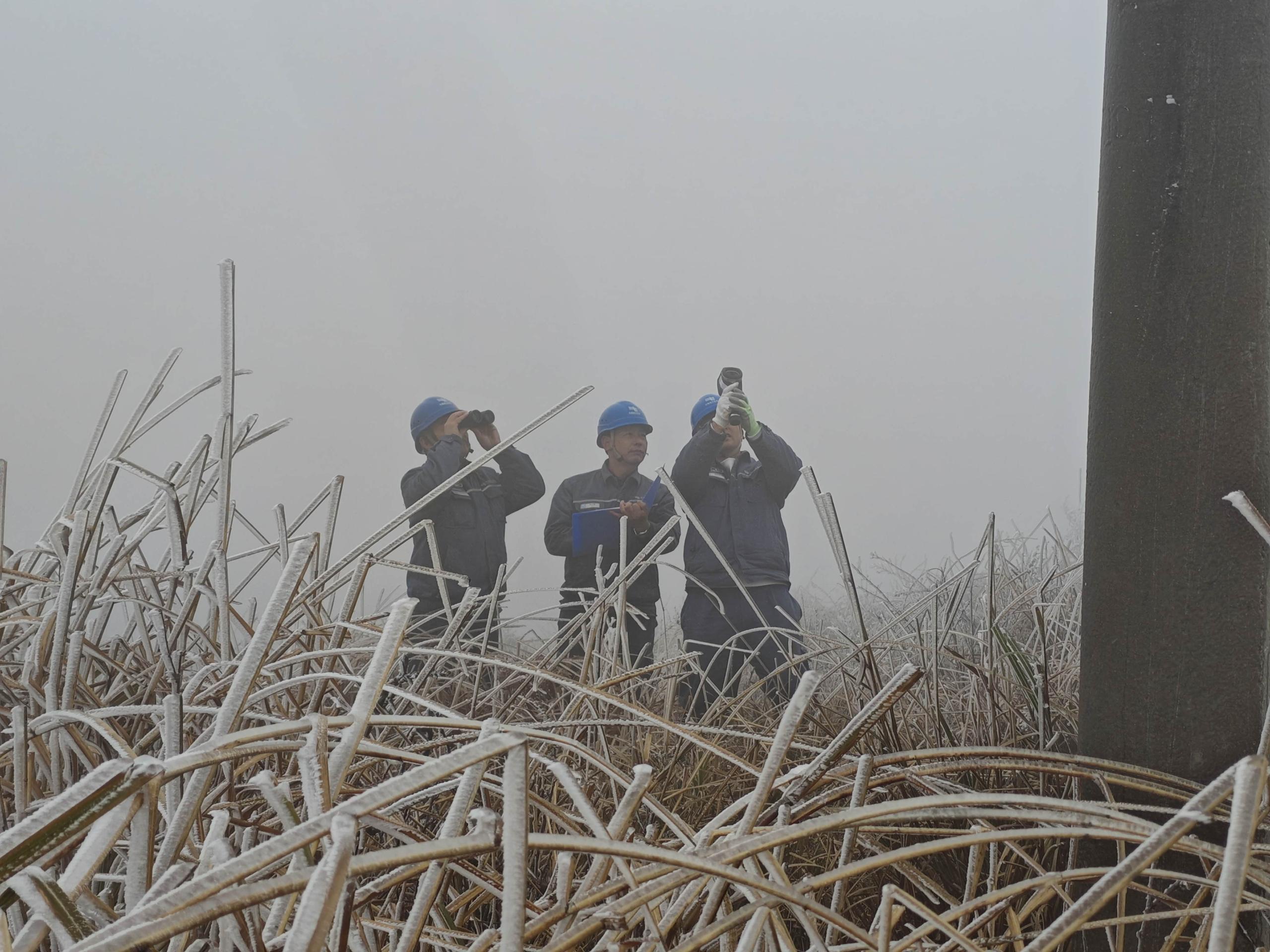 1月20日,南边电网贵阳息烽供电局责任主谈主员开展低温天气下的透露巡检。(受访者供图)