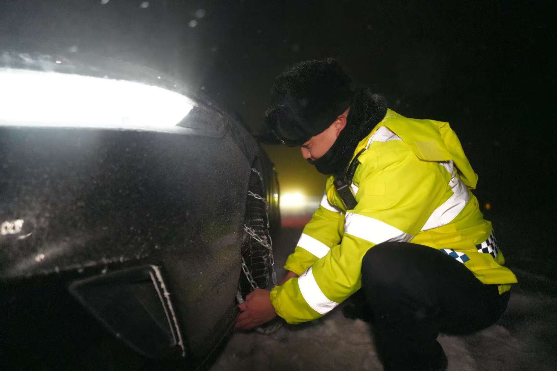 巴东县公安局绿葱坡派出所副长处甘方尧和共事们,发现一辆车因路面湿滑失控淹留在上坡路段。莫得涓滴彷徨,他们蹲在结冰路面上为车辆加装防滑链,然后协力将受困车辆推离危境区域。