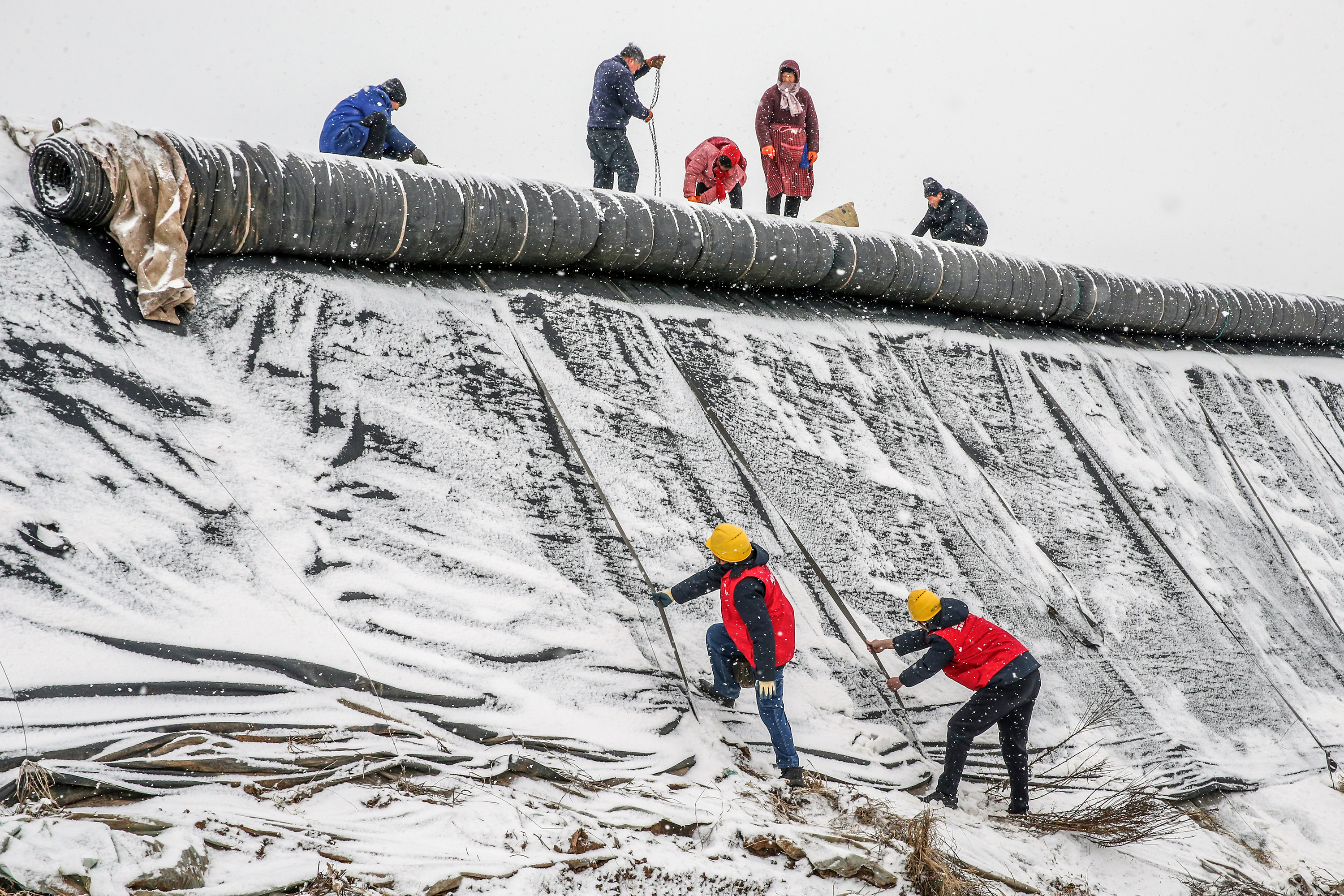 1月19日,在河南省焦作市泛爱源蔬菜专科联结社,辖区供电员工匡助菜农对蔬菜大棚御寒棉被进行保养。新华社发(程全摄)