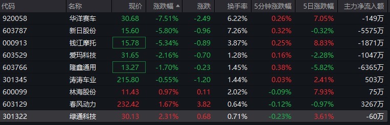 摩托车认识有所调度。“张雪机车”认识龙头宏昌科技在二连板之后,进击发布股票来往相配波动公告,本日宏昌科技盘中涨超6%。华洋赛车、新日股份、钱江摩托则跌超5%。
