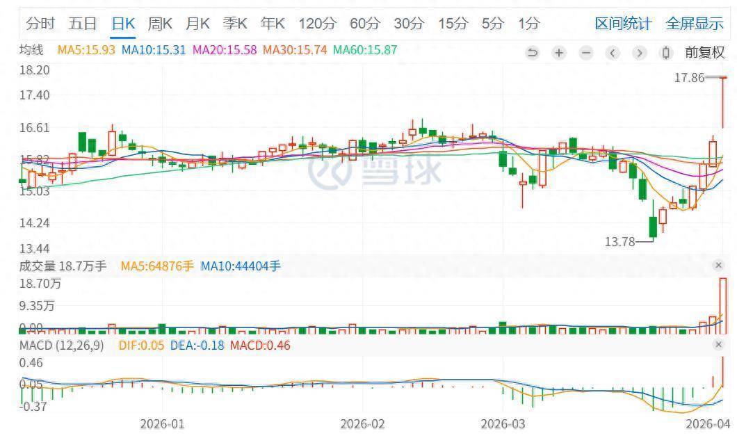 4月9日复牌,嘉华股份(603182)开盘即冲涨停,随后顷刻开板回落,资金博弈后速即回封,杀青午间收盘报17.86元/股。音讯面上,公司控股推动将变更为山东省地皮发展集团有限公司(下称 “地皮集团”),国资背书提振商场信心。值得崇敬的是,4月1日停牌,公司股价已通顺三个交游日上升。