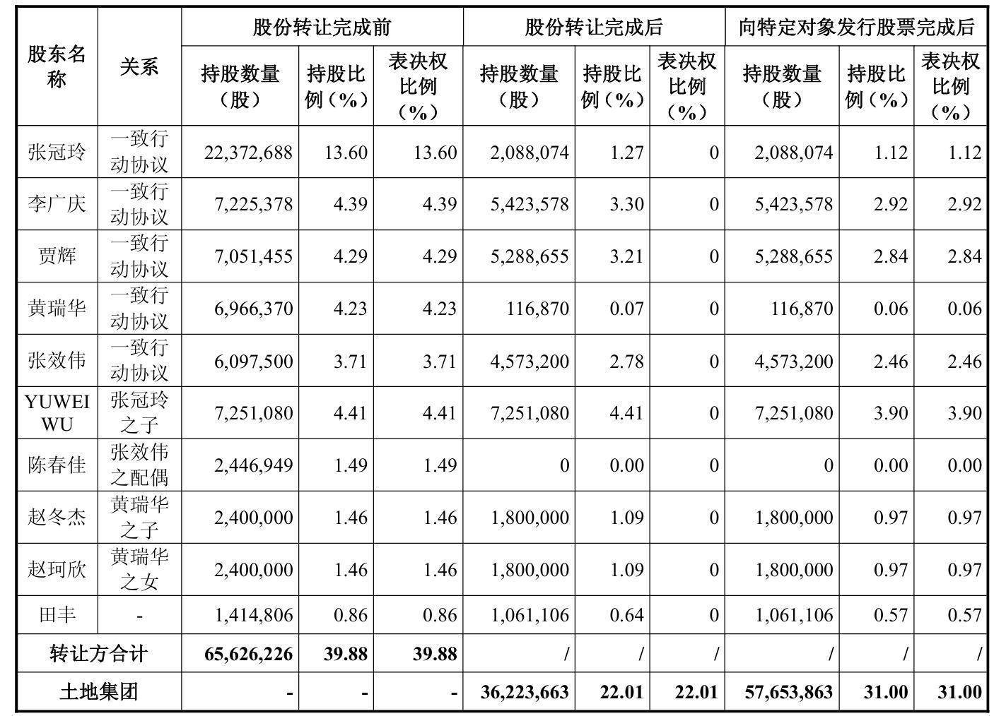 在完成前述股份转让后,张冠玲、李广庆、贾辉、黄瑞华、张效伟破除一致算作关连。同期,转让方及推动YUWEI WU分歧签署了《表决权放置承诺》,承诺自观点股份过户完成之日起至商定的向特定对象刊行股份完成之日或地皮集团获取嘉华股份限制权36个月止,不能消释地放置其握有上市公司一说念股份对应的表决权。